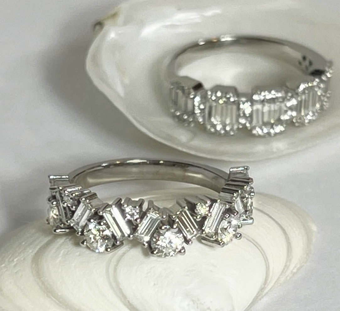 We created an add-on to her existing Wedding Band for a more substantial look. The measurements were made to interlock effortlessly to perfection. Now the Client can stack two rings for a more pronounced wreath look or wear them individually. We all know a woman loves options!