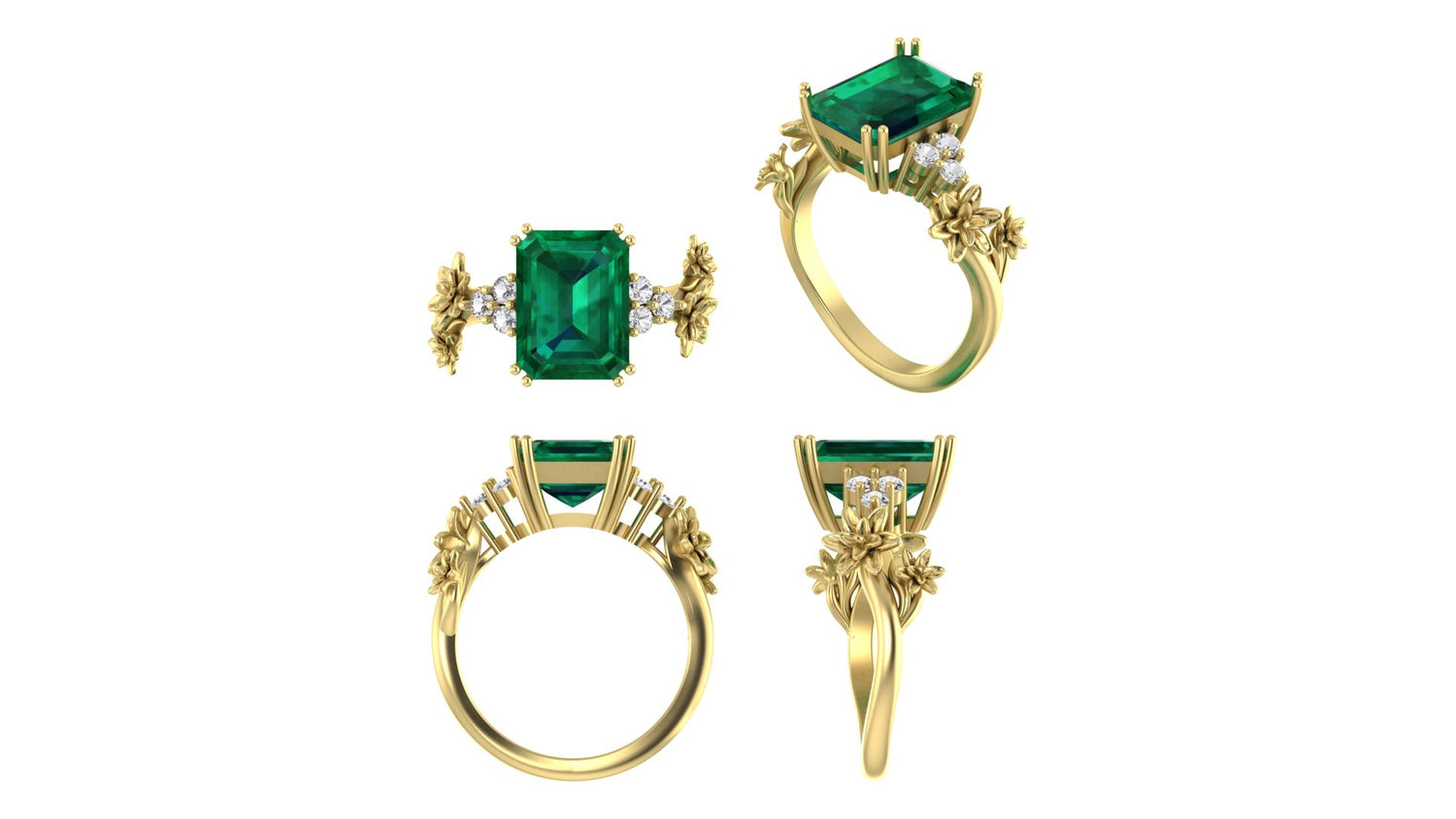 Emerald Engagement Ring with Diamonds & Her Favorite Flowers