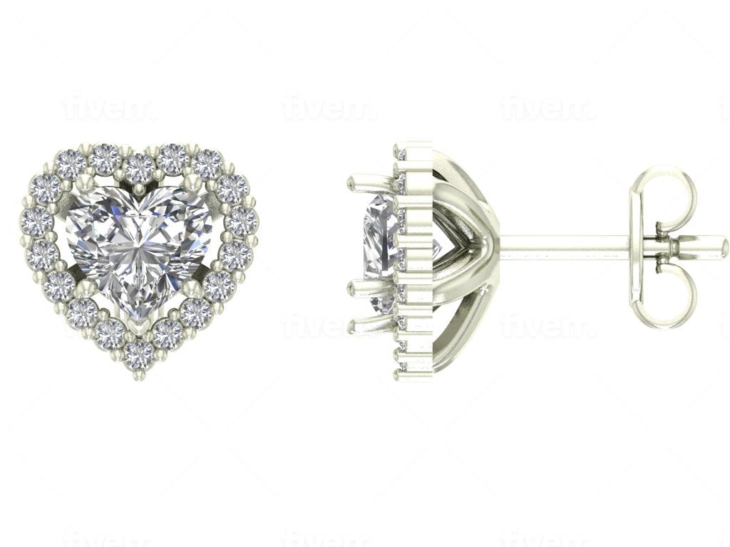 Heart Diamond Studs with Matching Earring Heart Halos, for two different styles to wear in one Earring. Wear Earring as a Heart Stud or with Halo!