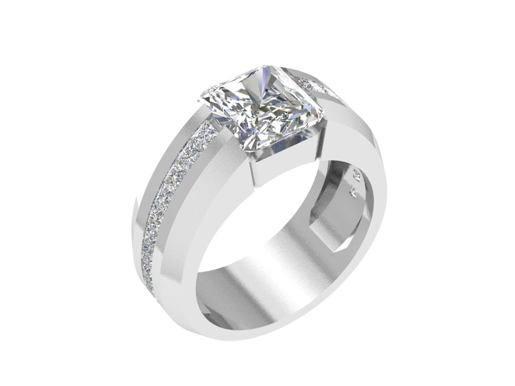Men's Radiant-Cut Pressure Set Band with Princess-Cut Accent Stones. This ring celebrates a life-long love story. Perfect Design Example of a Masculine Diamond Band.